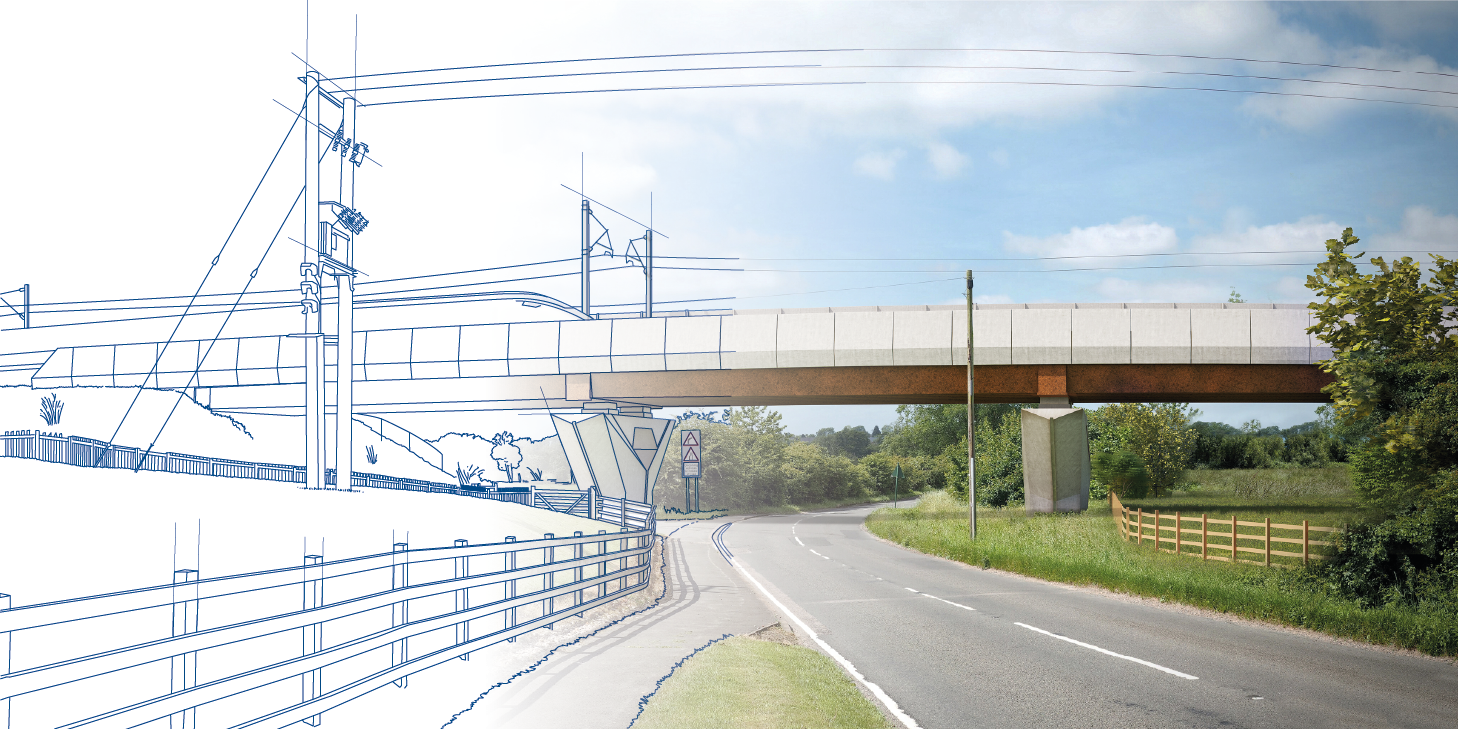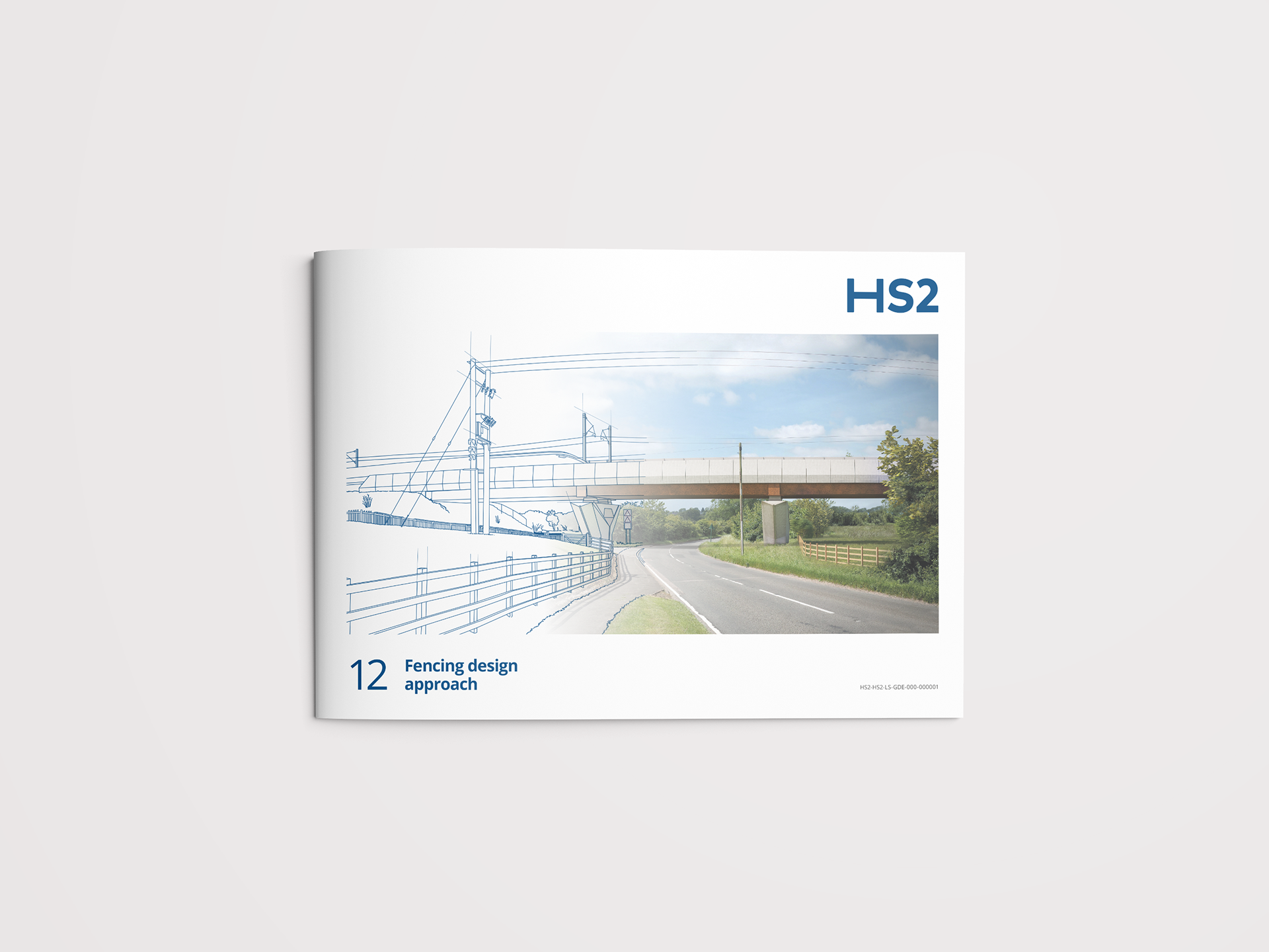 Covers for a series of documents for HS2, using existing renders to create an architectural outline look. There were 14 in total.